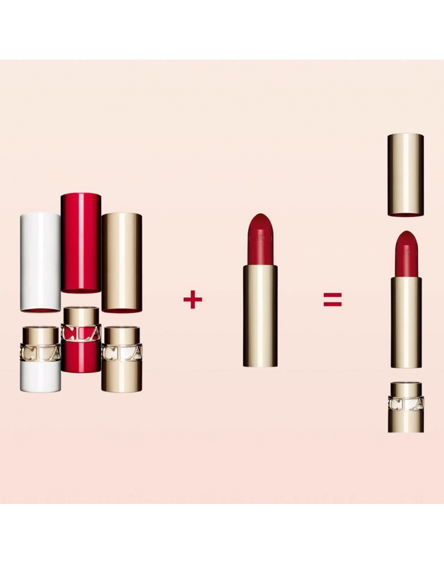 Escolha o seu estojo glamoroso e recarregue-o infinitamente! Com o seu estojo recarregável, Joli Rouge reinventa-se e torna-se um gesto tão comprometido quanto elegante. Mais do que um gesto de maquilhagem, Joli Rouge pode ser recarregado e personalizado de acordo com o seu estilo. O estojo Joli Rouge está disponível em 3 cores: vermelho, branco e dourado. Você pode recarregá-lo à vontade com o acabamento e tonalidade que desejar. Personalize o seu batom de acordo com a cor, acabamento e estojo escolhidos. Prenda e solte à vontade, é fácil e divertido. Esta nova geração recarregável Joli Rouge ilustra o compromisso histórico da marca Clarins com uma beleza cada vez mais responsável. Finalmente, mais do que um porta-jóias… Joli Rouge não se contenta em simplesmente parecer bonita. Com esta embalagem recarregável, eis finalmente um novo objeto que embeleza e potencializa a maquilhagem. Contém aproximadamente 20% de plástico reciclado.